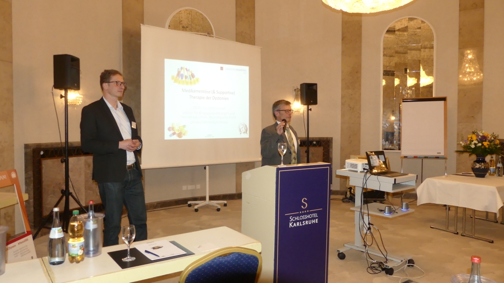 Die Tiefe Hirnstimulation ist seit 20 Jahren ein fest etabliertes Behandlungsverfahren. Bundesweit gibt es 40 Zentren mit jährlich insgesamt circa 800 Implantationen. Der Redner empfahl, ein Zentrum auszuwählen, in dem die Vor- und Nachsorge komplex vertreten sind. An dieser Stelle gab Herr Volker Kreiss den Hinweis, dass die Selbsthilfeorganisation „Dystonie-und-Du“ Informationen zu Behandlungszentren bereithält. Herr Prof. Nikkhah stellte noch einmal ausführlich die THS-Sprechstunde und THS-Konferenz an seiner Klinik vor. Die prächirurgische Diagnostik mündet in einem ausführlichen Aufklärungsgespräch des Neurologen und des Neurochirurgen mit dem Patienten.