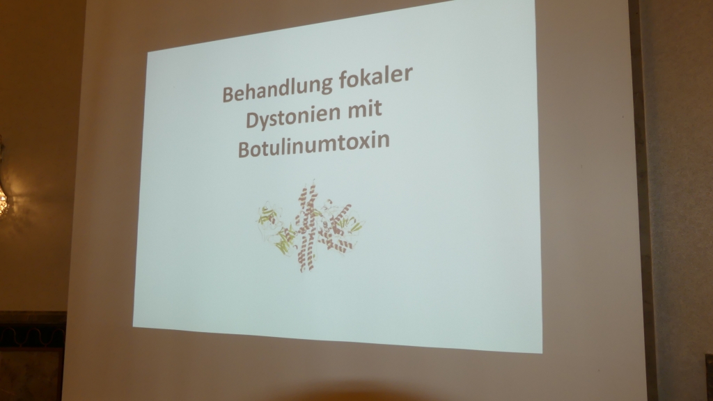 Nun erläuterte der Vortragende die Behandlungsmöglichkeiten der Dystonie. Die Behandlung ist überwiegend auf die Reduzierung der Symptome sowie die Normalisierung der Haltung und des Bewegungsablaufs gerichtet. Ziel ist die Verbesserung der Lebensqualität des Betroffenen. Bei überwiegend fokalen Dystonien ist die Injektion von Botulinumtoxin die Methode der Wahl; wenn mehrere Körperregionen betroffen sind, treten Medikamente und/oder chirurgische Verfahren in den Vordergrund.